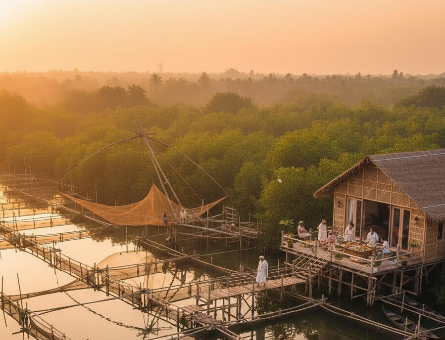 Casa Lacus is a new spot taking shape on Kuthirakoor Kari, a little-known peninsula near Palluruthy, set within the tranquil backwaters of Vembanad Kayal.Surrounded by water on three sides and fertile wetlands on the fourth, this land has always lived by the rhythms of water, long before it became a place to stay.Today, Casa Lacus begins its story the same way the land always has: with paddling, mangrove, aquaculture, and respect for the ecosystem.